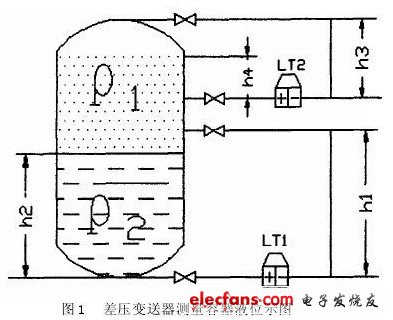 (1)采用差壓變送器測量界面誤差原因分析(圖1)