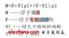 磁致伸縮式液位計出廠是根據(jù)用戶提供的“上密度”和“下密度”確定浮子的重量。在測量界面時,實際上是浮子浮在界面上,所受的浮力和重力相等。公式為: