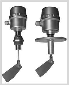 LK-UZXK阻旋式料位計是采用微電機經減速后,帶動檢測葉片以5-6轉/分的轉速旋轉的。當被測物料的料位上升使葉片的轉動受到阻礙時,檢測機構便圍繞主軸產生旋轉位移。此位移使其中一個微動開關動作發出有料信號,隨后另一個微動開關動作,切斷電機電源使其停轉。只要料位不變此種狀態便將一直保持下去。當料位下降檢測葉片失去阻擋時,檢測機構便依靠彈簧拉力恢復原態。首先一個微動開關動作接通電機電源,使其旋轉,隨后另一個微動開關動作發出無料信號,只要沒有物料阻擋檢測葉片的轉動,此種狀態也將一直保持下去。