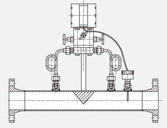 3、 水平安裝時(shí),楔式差壓元件應(yīng)與管道中心線成90度。對(duì)于垂直安裝,由于取壓點(diǎn)之間輕微的靜壓影響必須注意差壓變送器調(diào)零楔形流量計(jì)上游側(cè)最小直管段